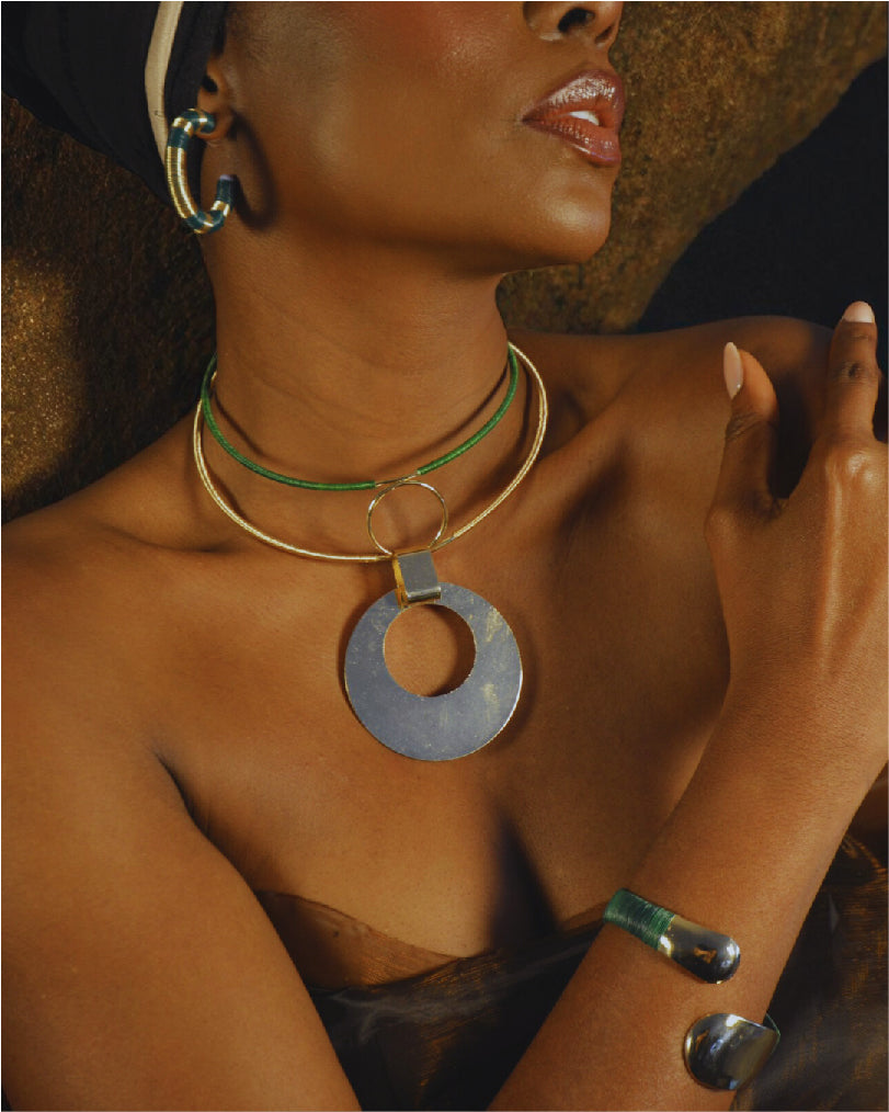 Materiales: Metal bañado en oro de 14k, wuerregue e hilos de cobre