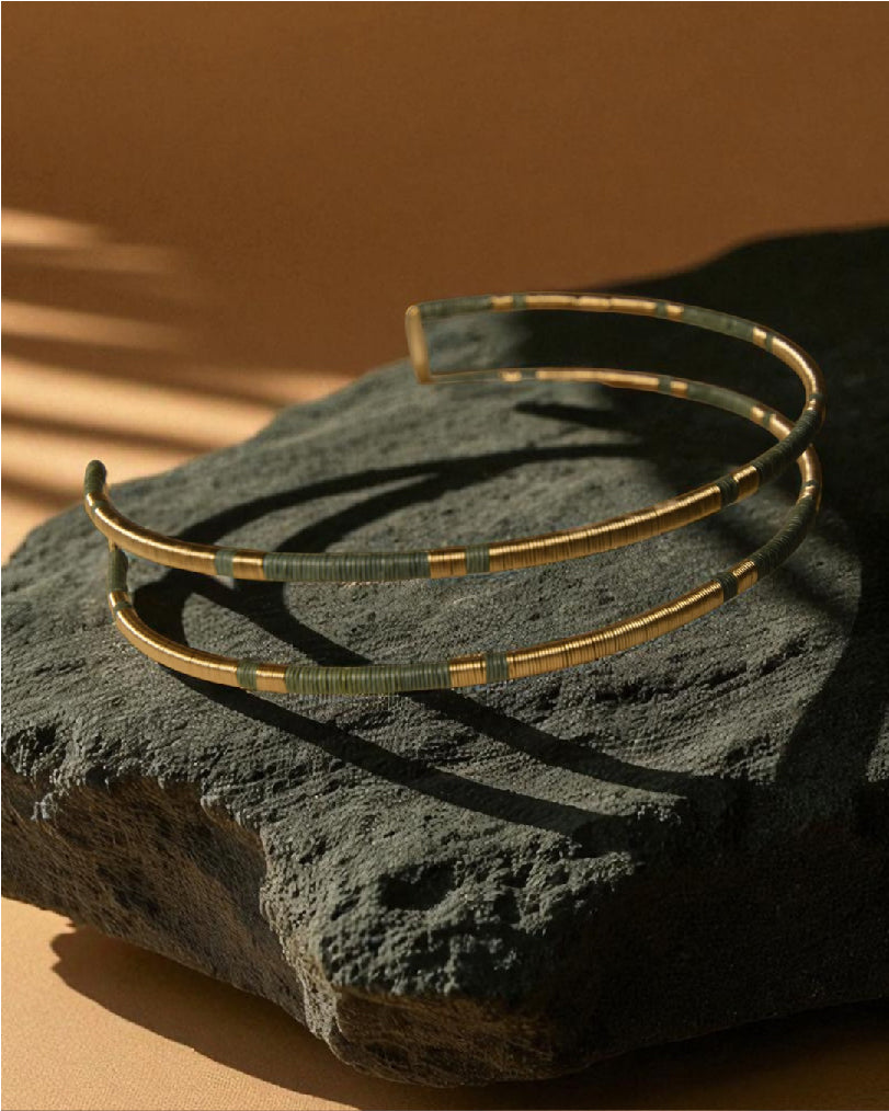 Materiales: Metal bañado en oro de 14k, wuerregue e hilos de cobre