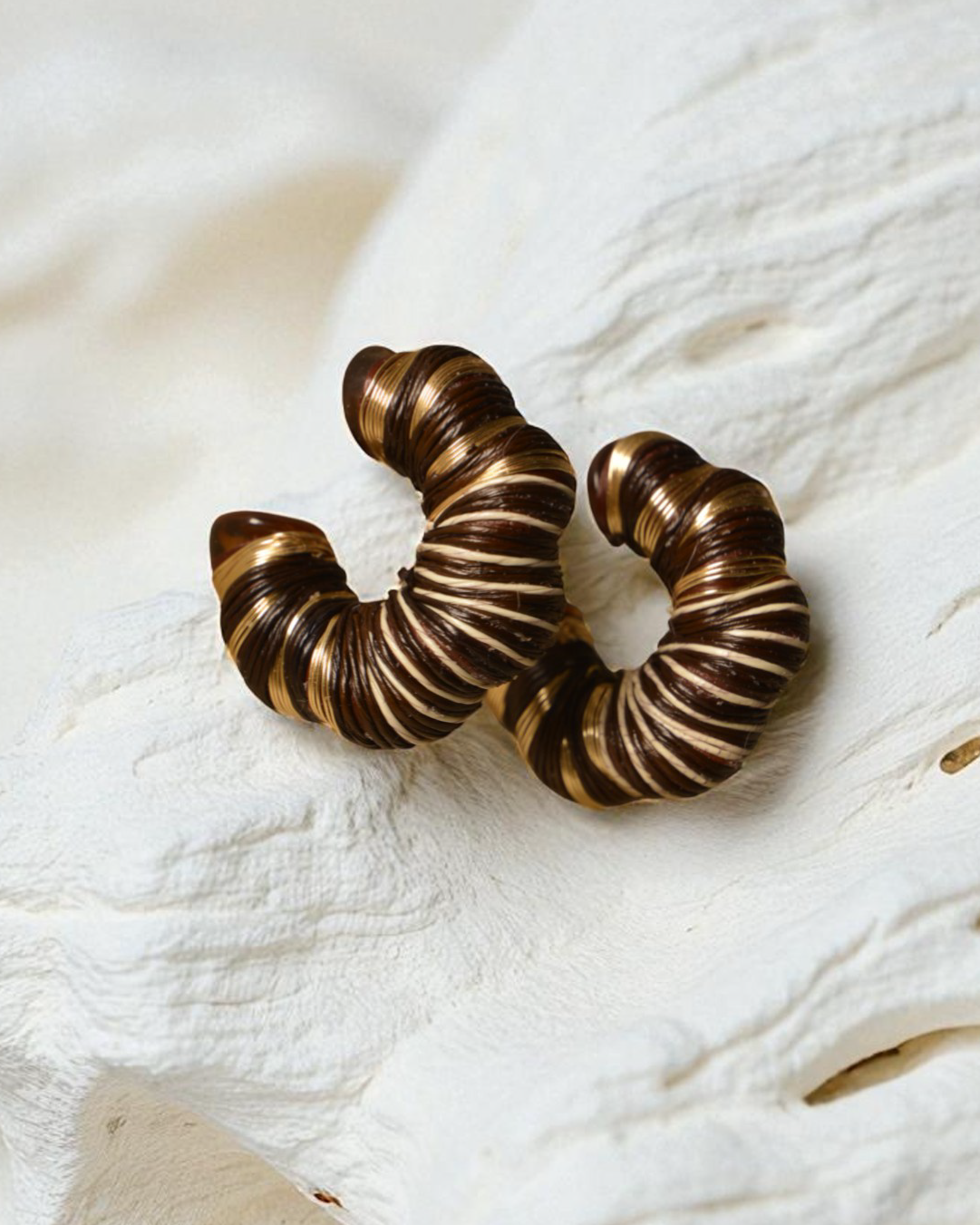 Materiales: Metal bañado en oro de 14k, wuerregue e hilos de cobre